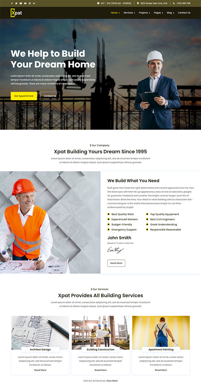 建筑施工装修公司网站模板是一款基于Bootstrap5实现的建筑装修公司网站模板