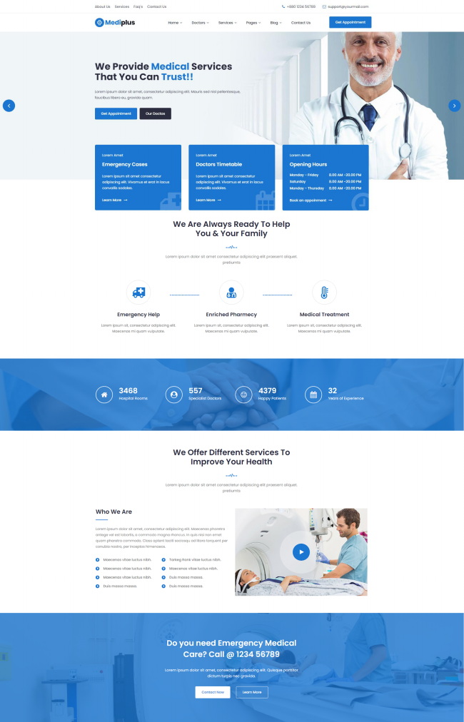 模板简介HTML5蓝色医疗服务网站模板是一款适合医疗服务行业的HTML5网站模板。