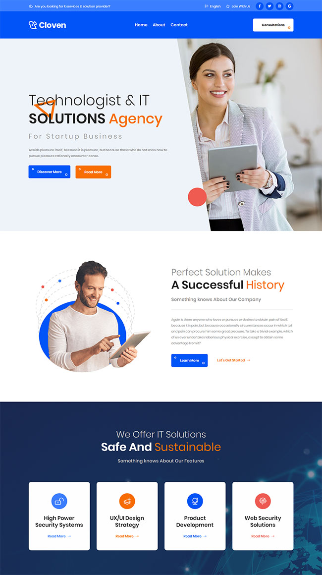 蓝色IT技术公司网站模板是一款蓝色的IT解决方案和网络技术服务公司网站模板。