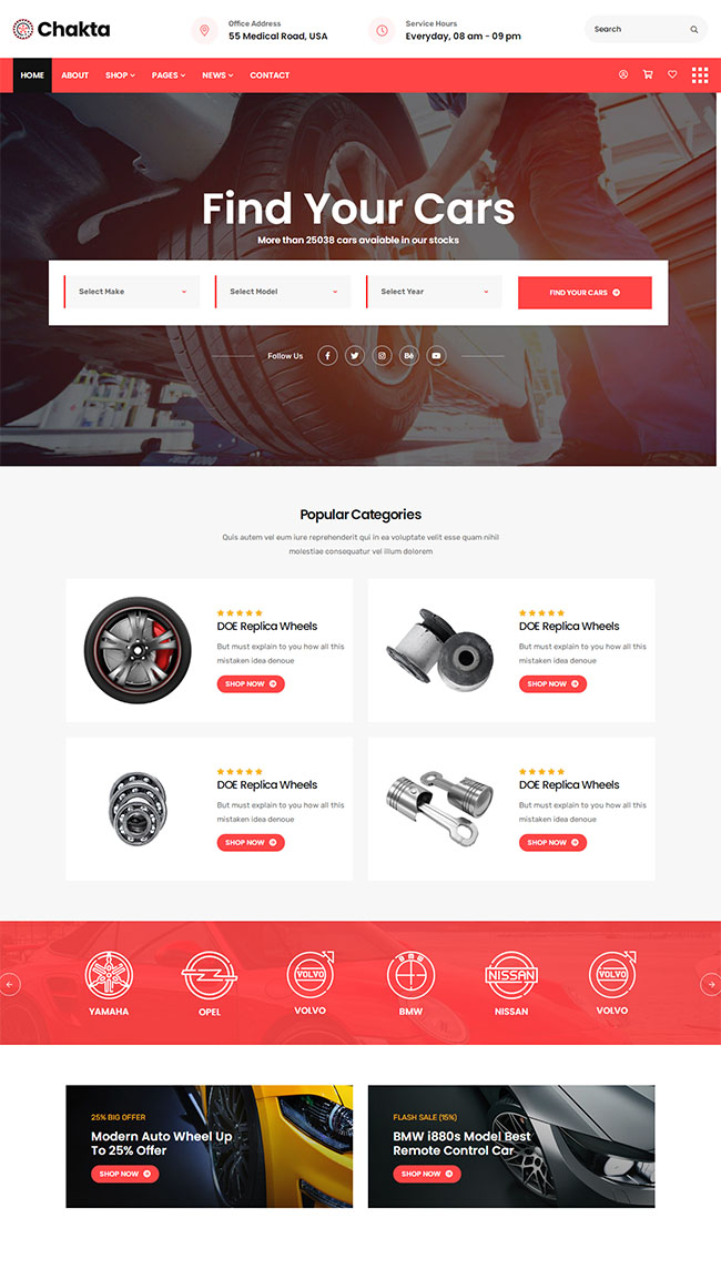 汽车配件零售电商网站模板是一款适合红色响应式的汽车零部件商店网站模板