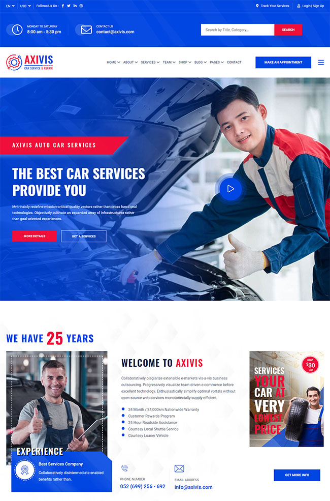 汽车改装维修服务网站模板是一款基于bootstrap制作的蓝色响应式汽车维修服务公司网站模板