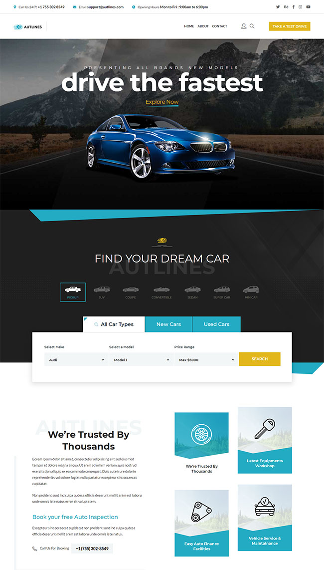汽车经销商官网HTML5模板是一款适合网站建设专题介绍模板