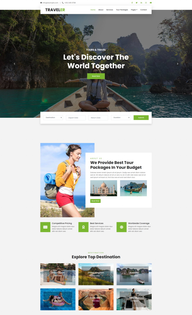 旅游宣传HTML5网站模板是一款响应式旅行社HTML5网站模板
