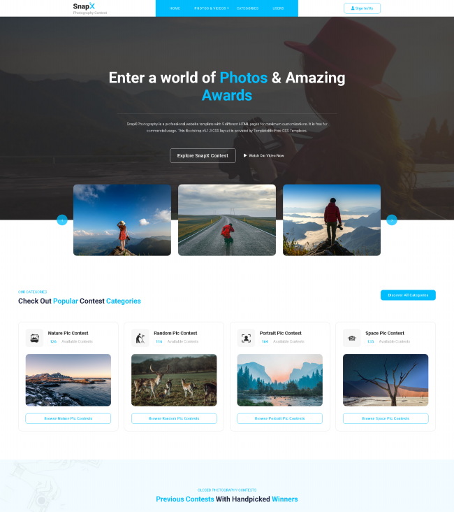 优秀摄影作品分享网站模板是一款适合优秀摄影作品分享展示的HTML5网站模板